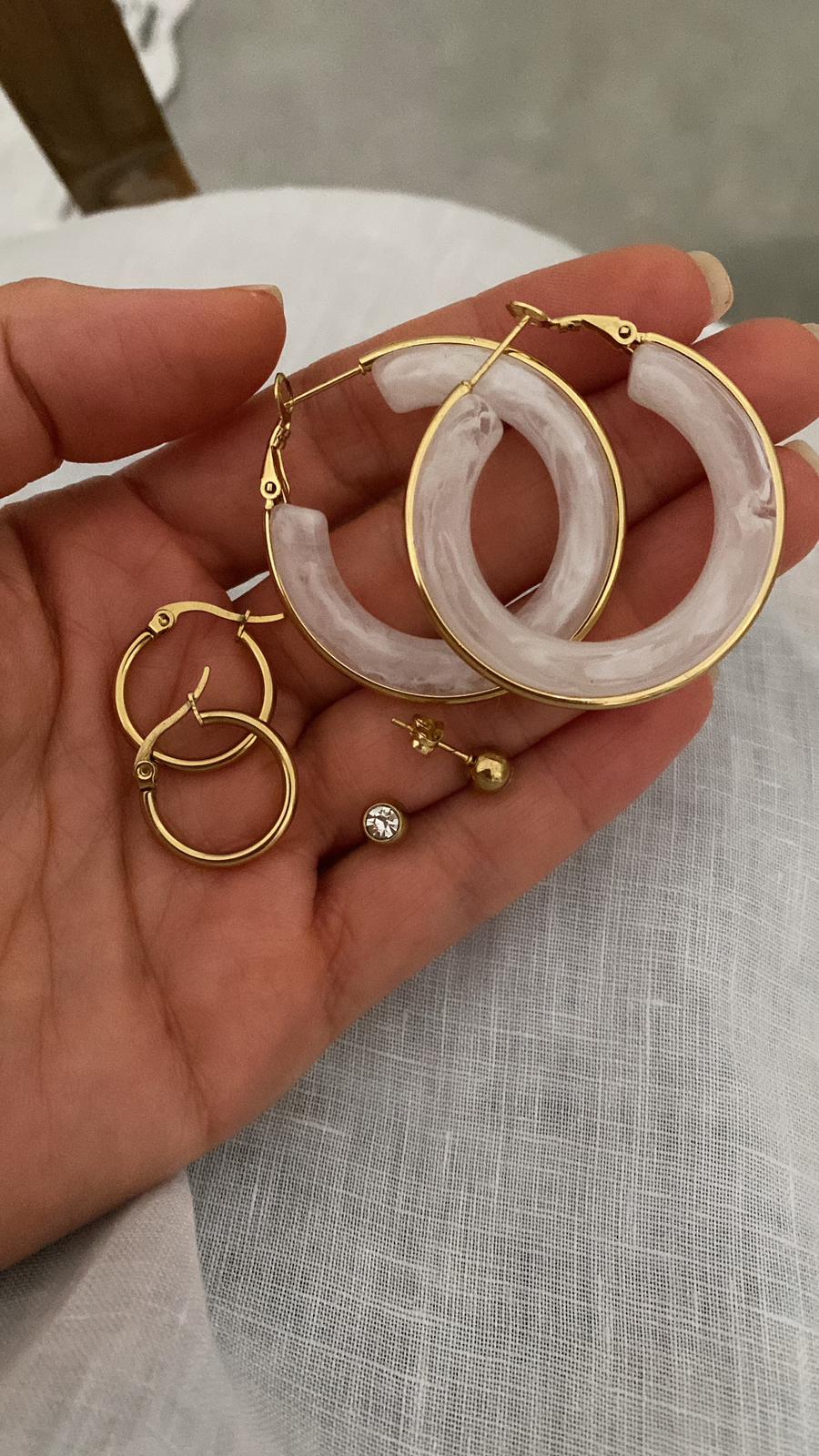 Beyaz Halka Model – Halka Model – Tektaş Model Gold Çelik Küpeler