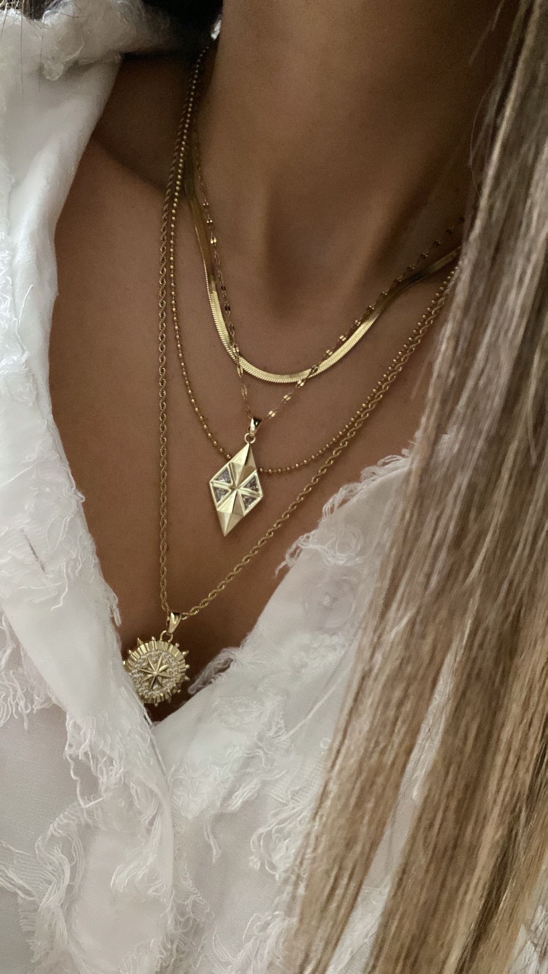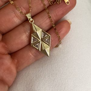 İkili İtalyan Zincir Model – Taşlı Üçgen Model – Güneş Model Gold Çelik Kolyeler