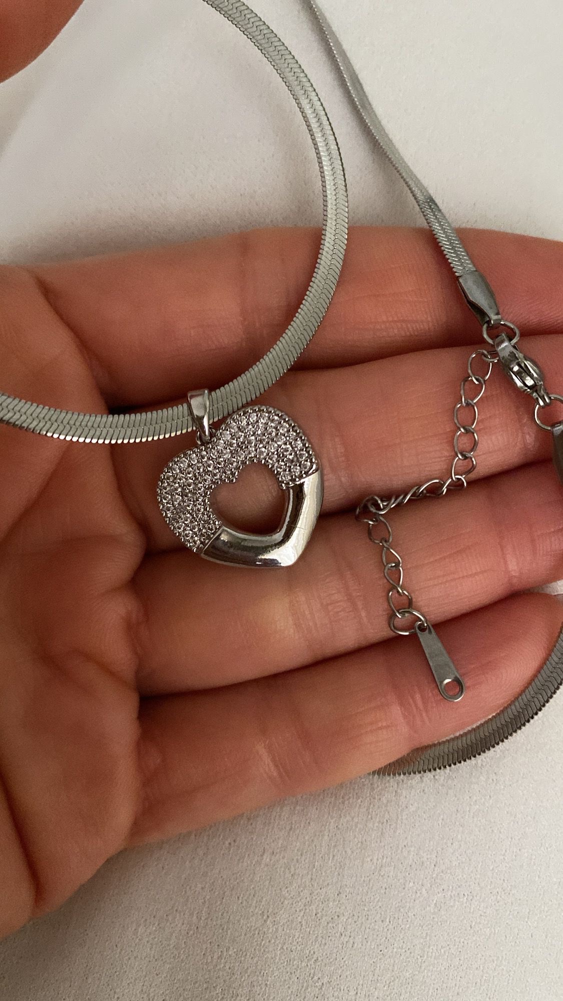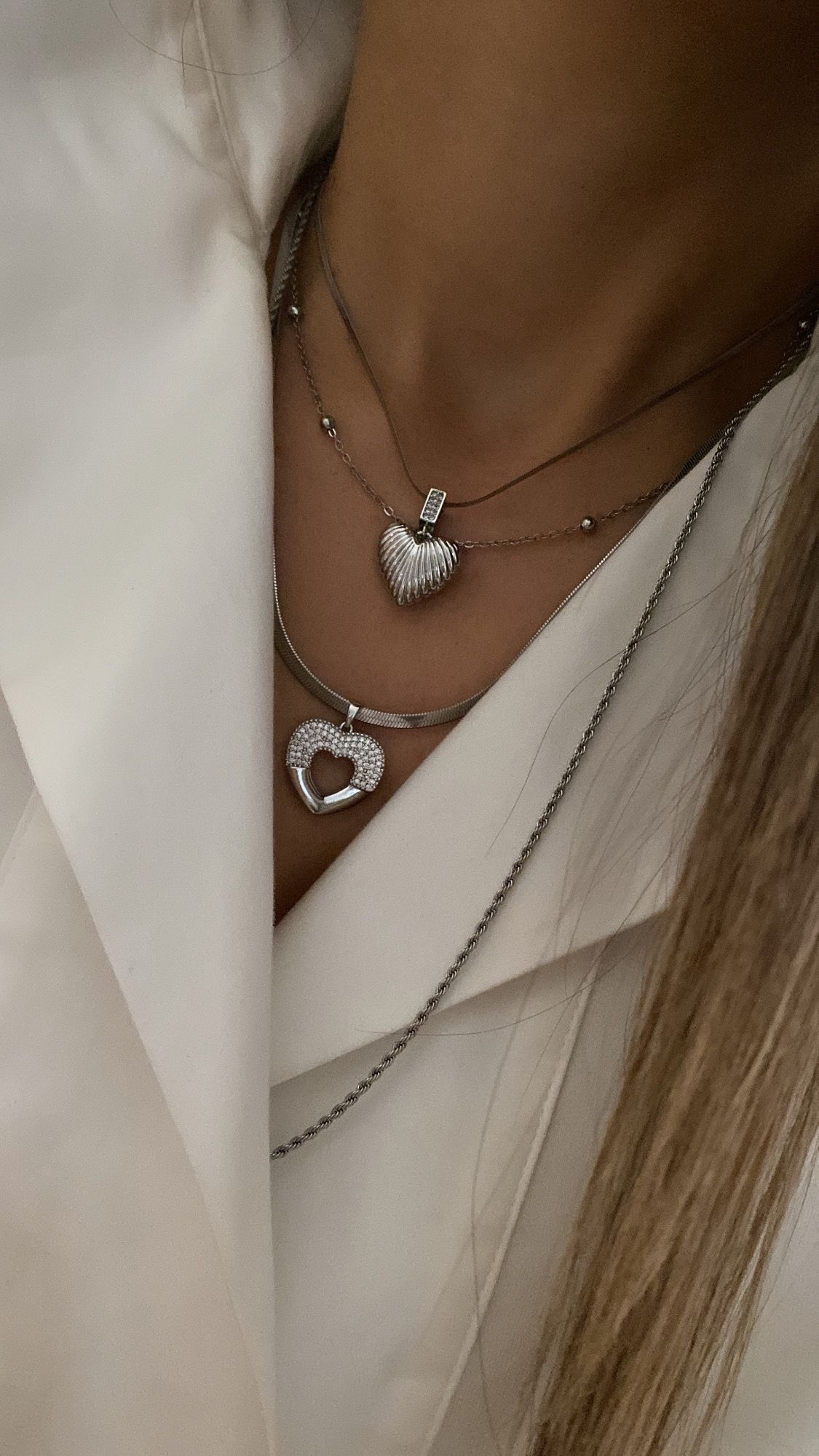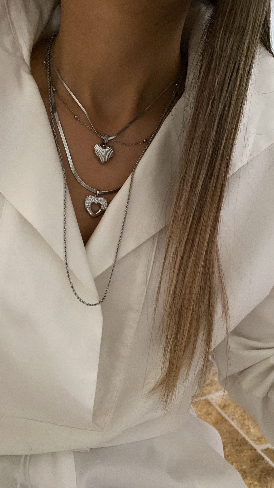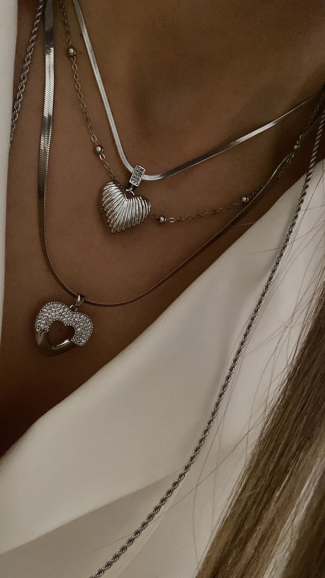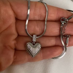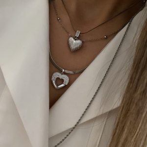 Kalp Model – Topçuk Model – Taşlı Kalp Model – Uzun Burgu Zincir Silver Çelik Kolyeler