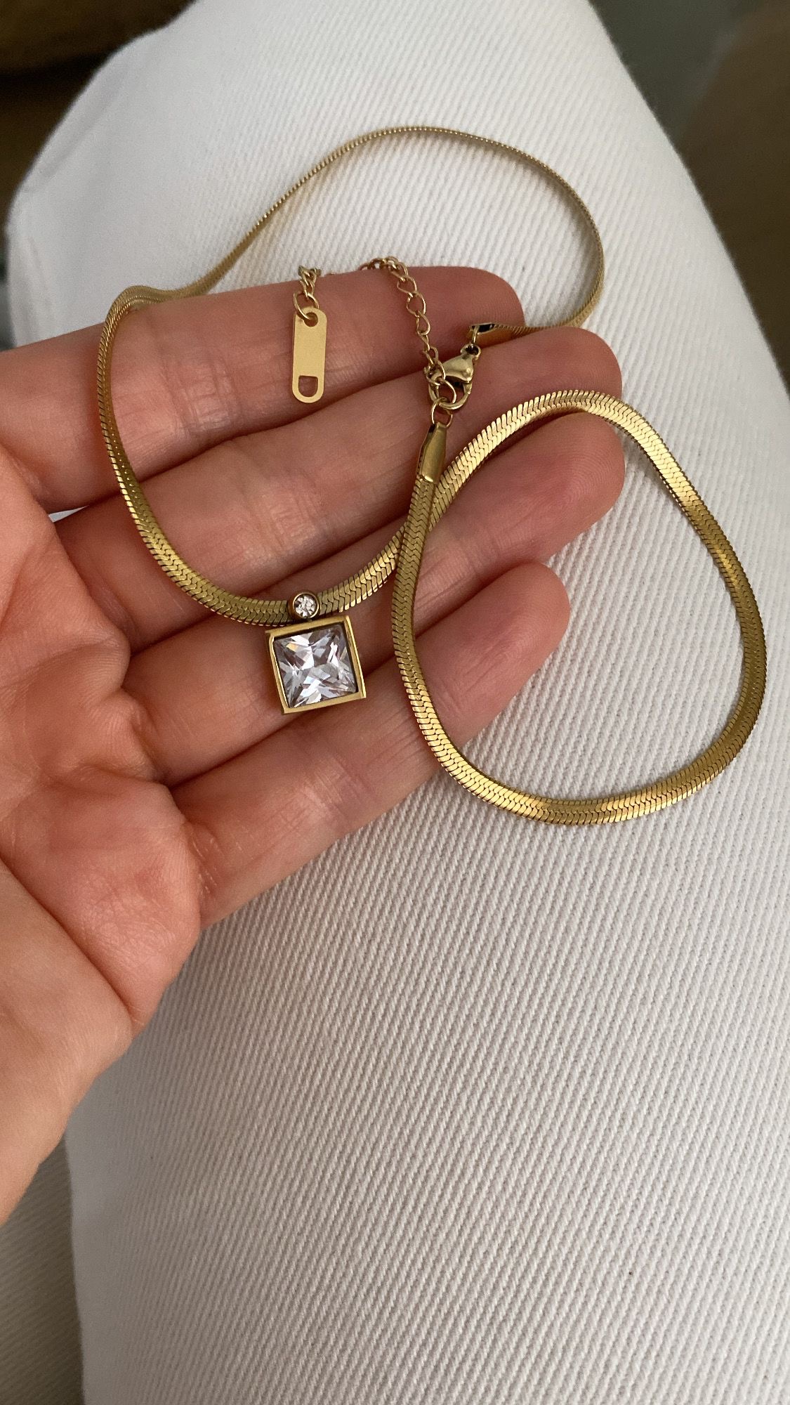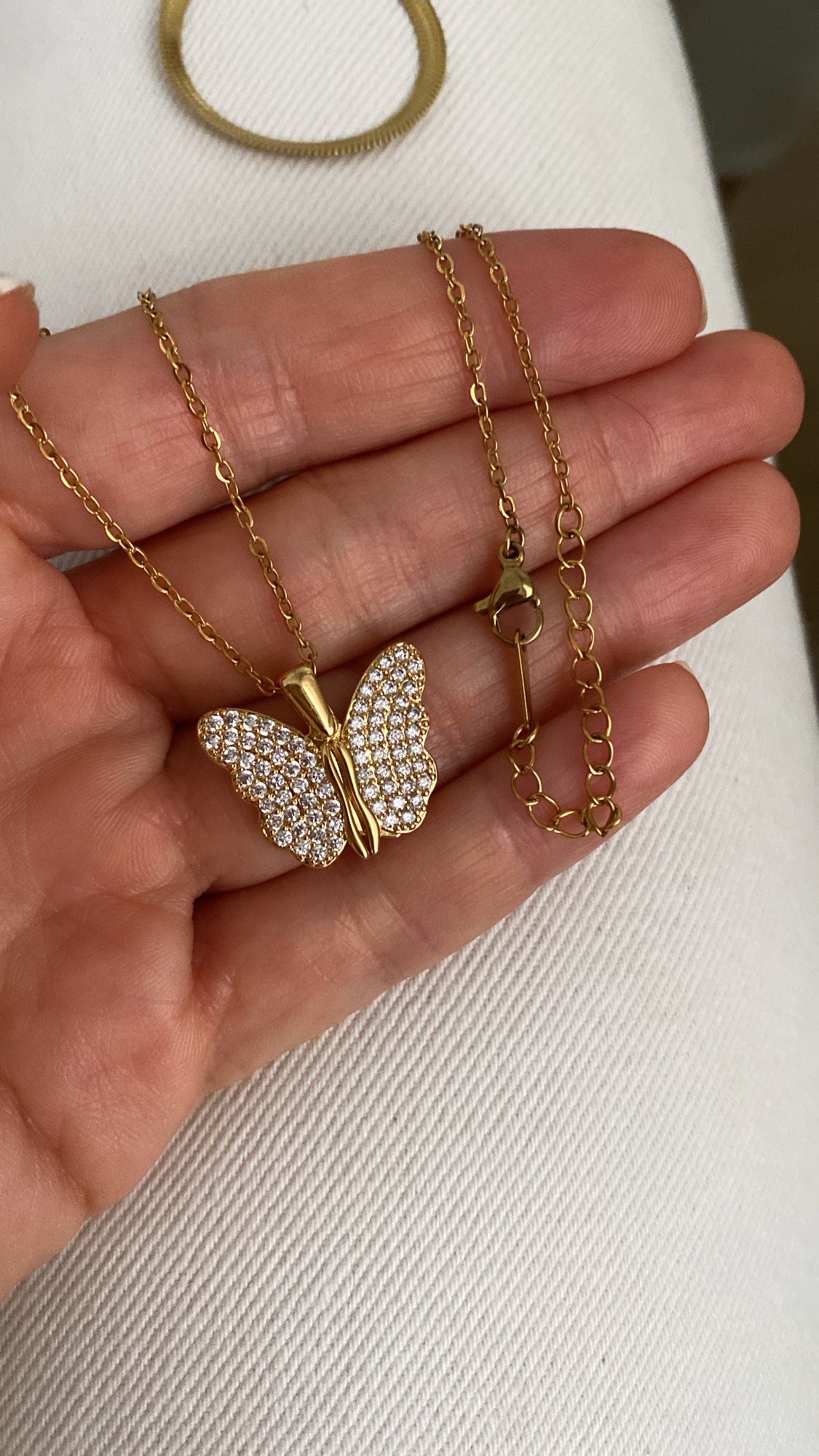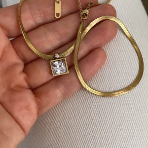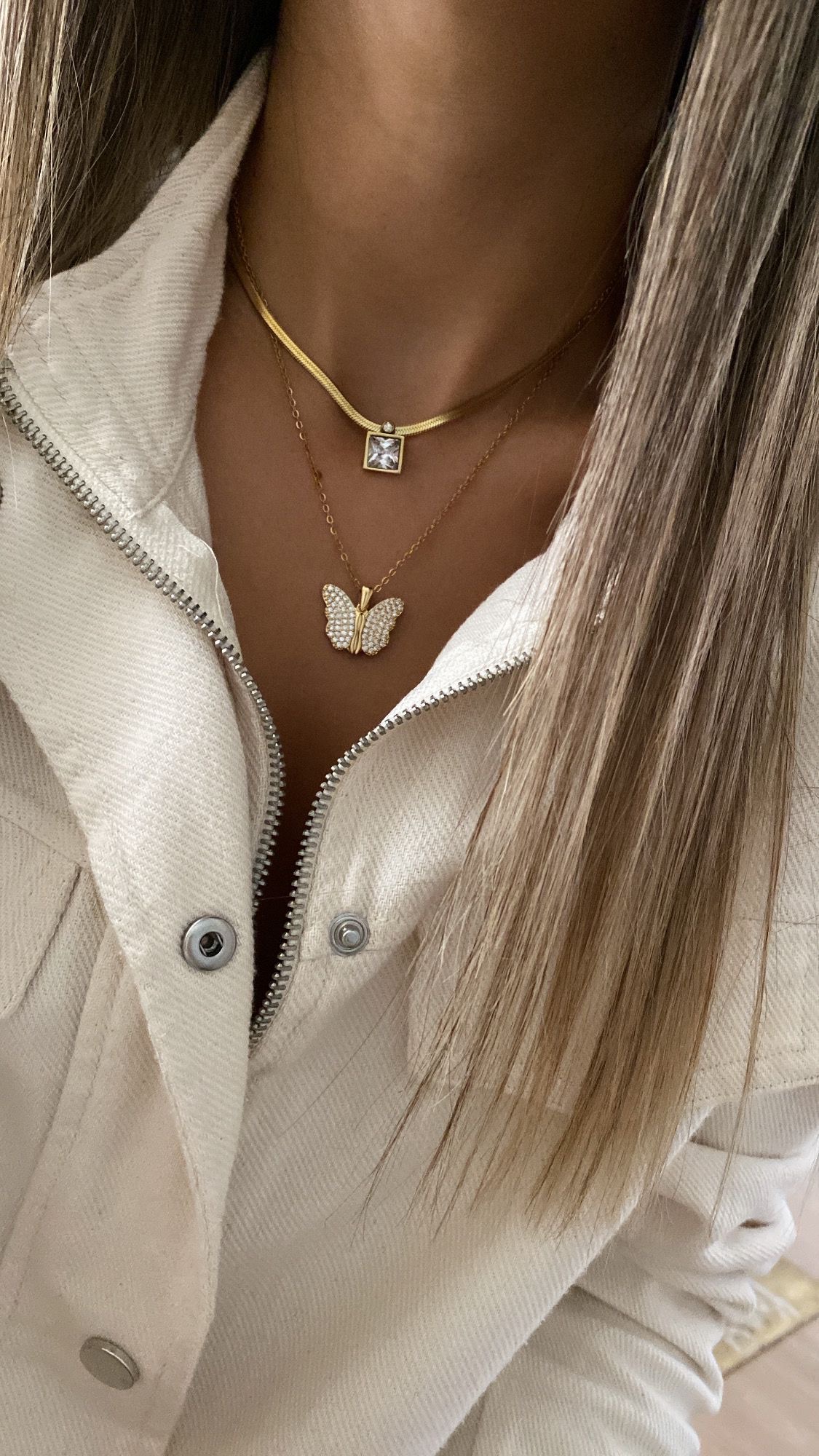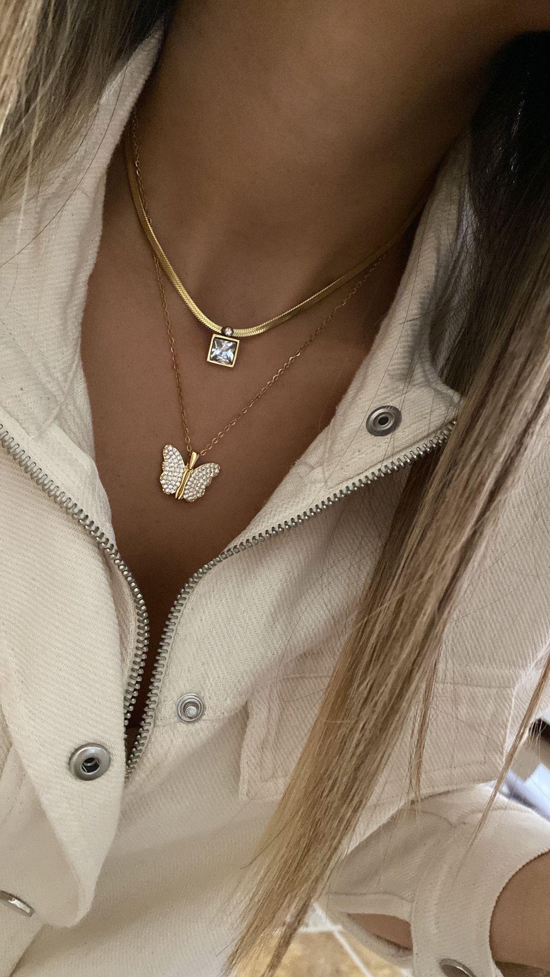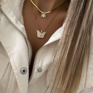 Kare Taşlı İtalyan Zincir – Kelebek Model Çelik Kolyeler
