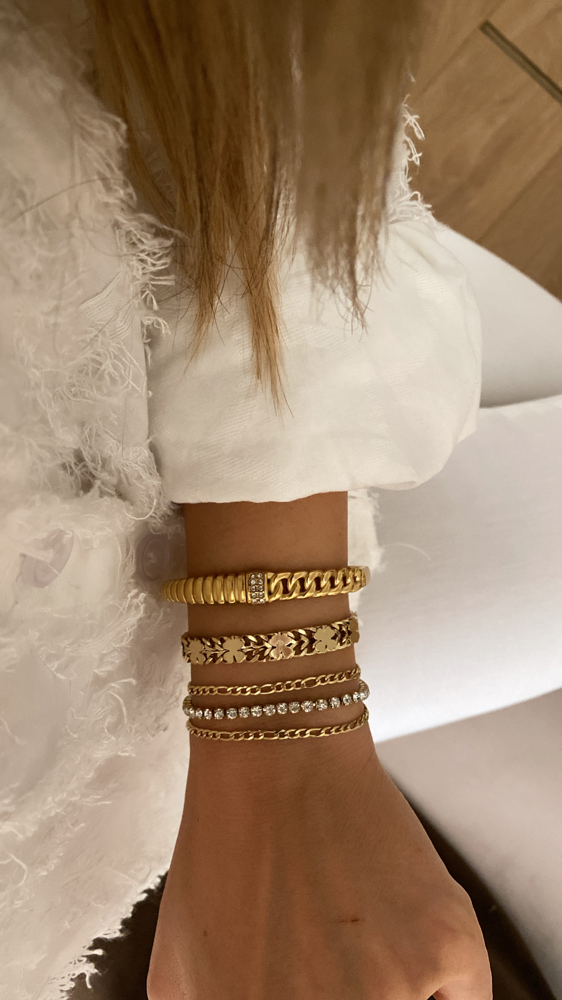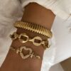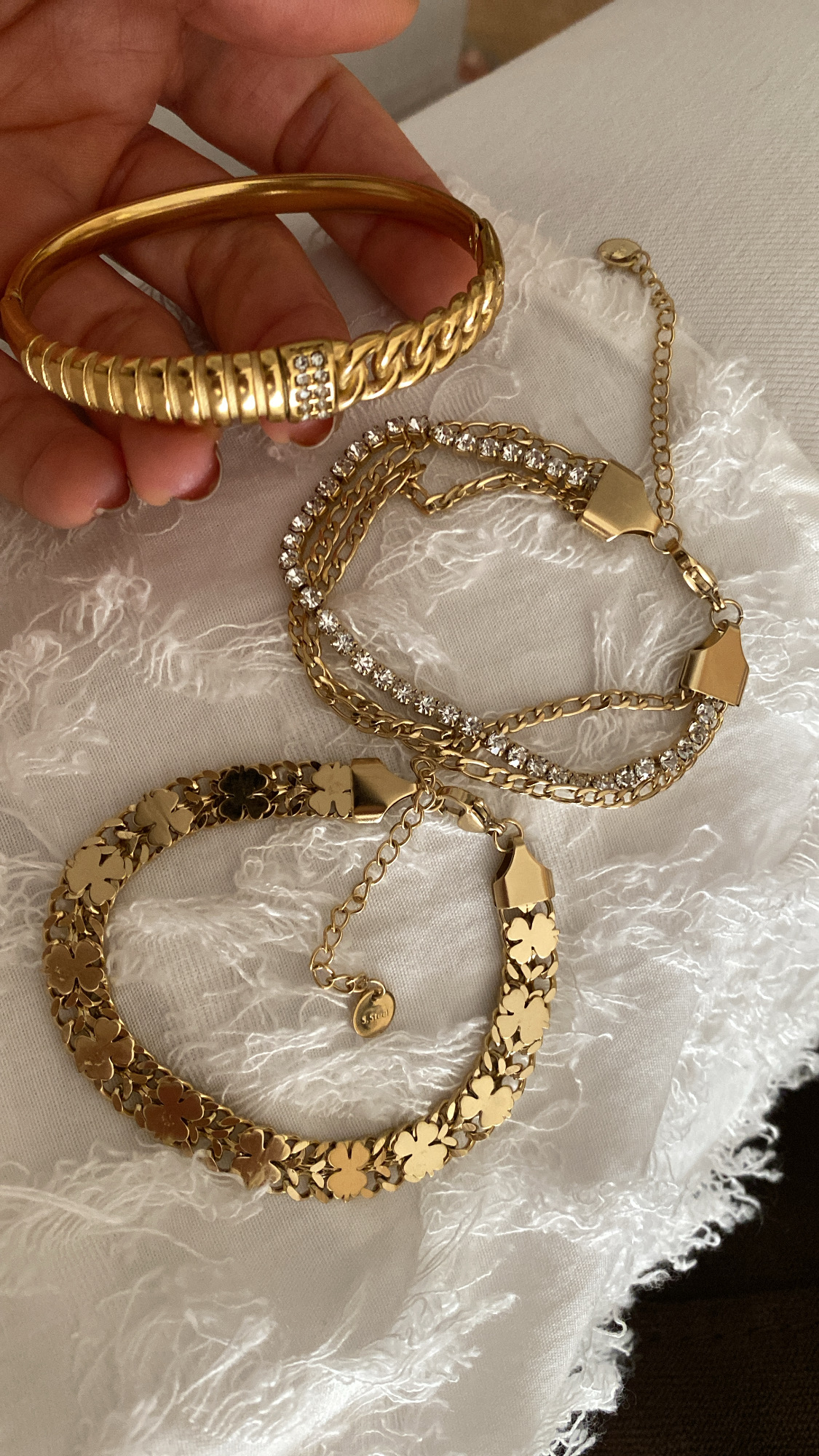 Kelepçe – Yonca Figür Model – Üçlü Model Gold Çelik Bileklikler