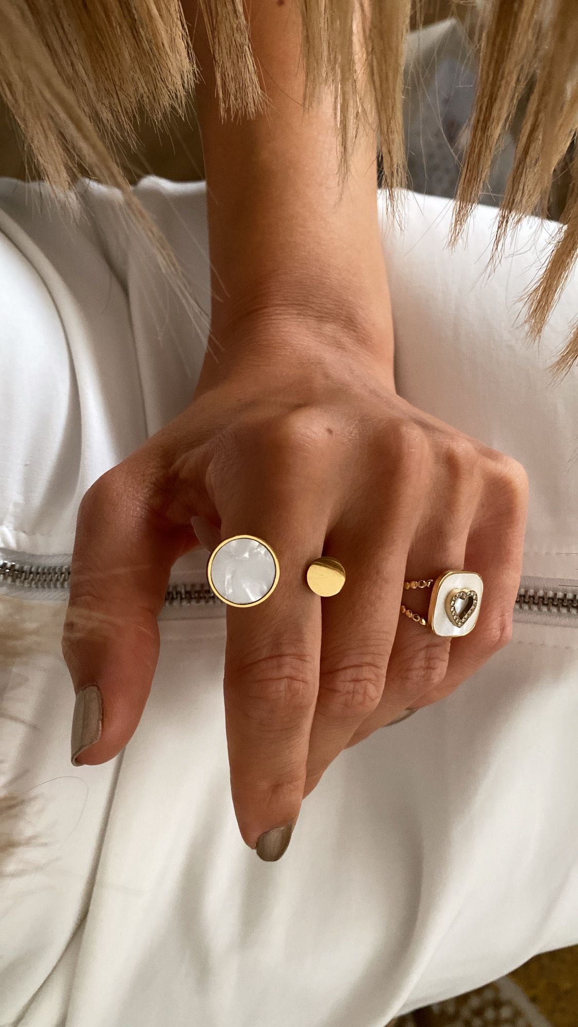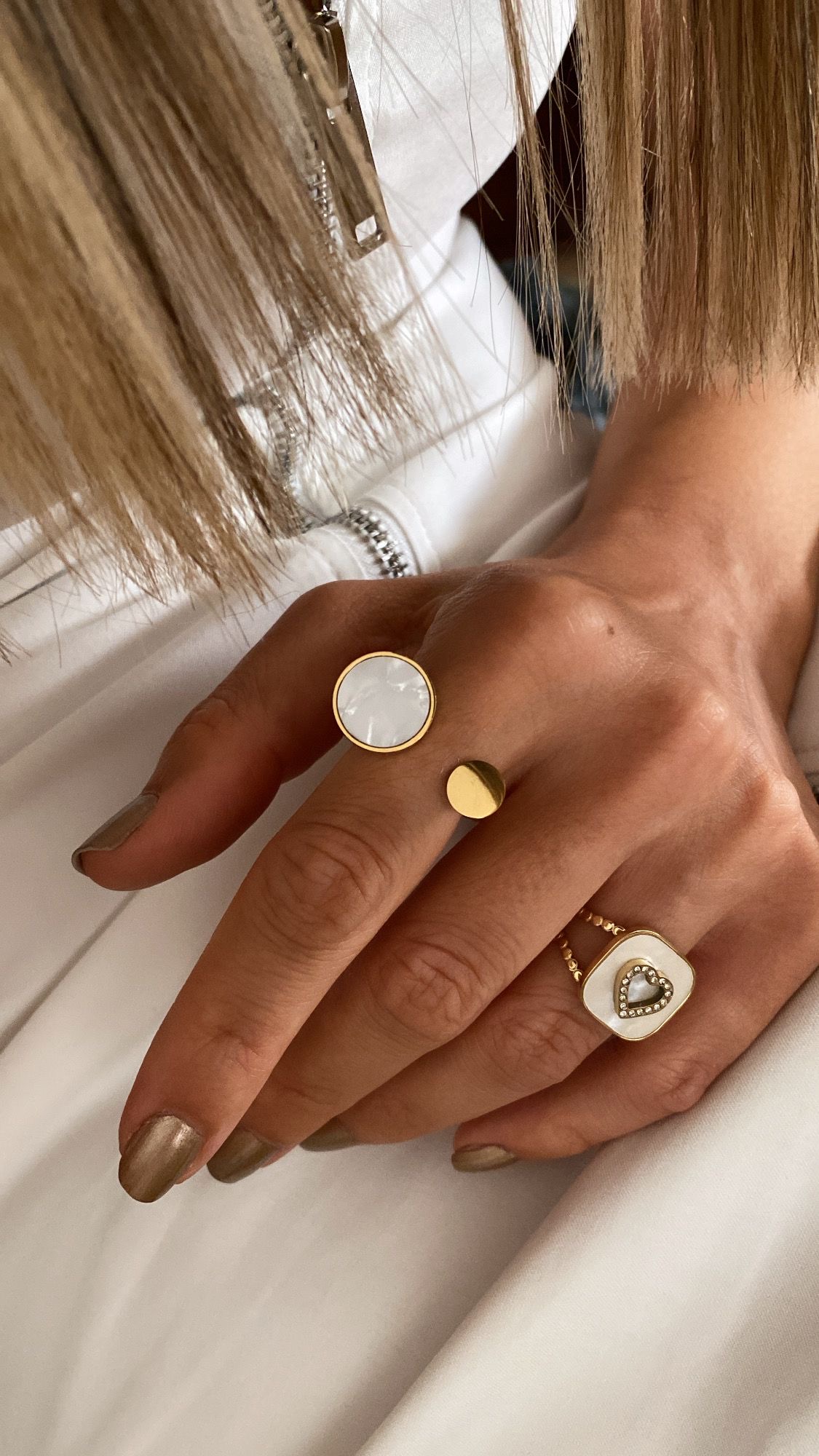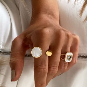 Sedefli Model – Taşlı Kalp Detay Gold Çelik Yüzükler
