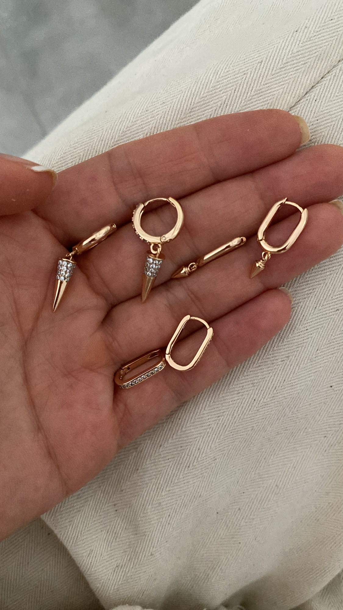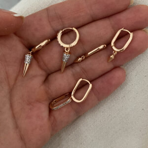 Taşlı Halka Model – Minik Figürlü Model – Elips Taşlı Model Rose Çelik Küpeler