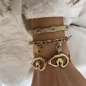 Taşlı Kelepçe – Deniz Figürlü Model – Tasarım Model Çelik Bileklikler