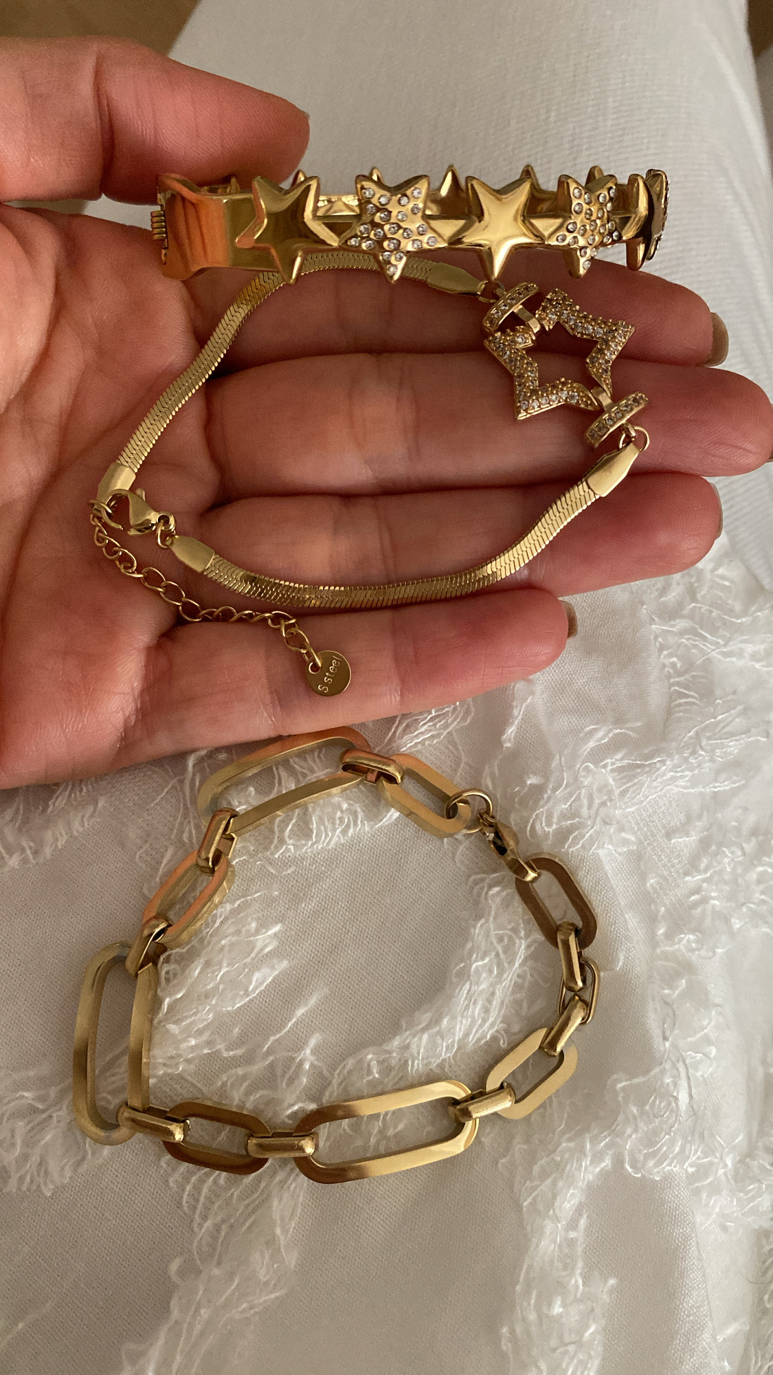Yıldız Kelepçe – Zincir Model – İtalyan Zincir Model Gold Çelik Bileklikler